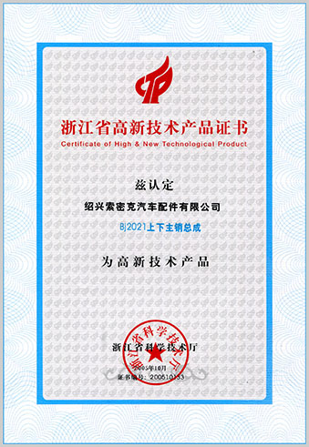 公司已先后通過(guò)IATF16949質(zhì)量管理體系認(rèn)證、ISO/14001環(huán)境管理體系認(rèn)證和OHSAS18001職業(yè)健康安全管理體系認(rèn)證。是“國(guó)家高新技術(shù)企業(yè)”“行業(yè)龍頭企業(yè)”和“全國(guó)百家優(yōu)秀汽車零部件供應(yīng)商”。